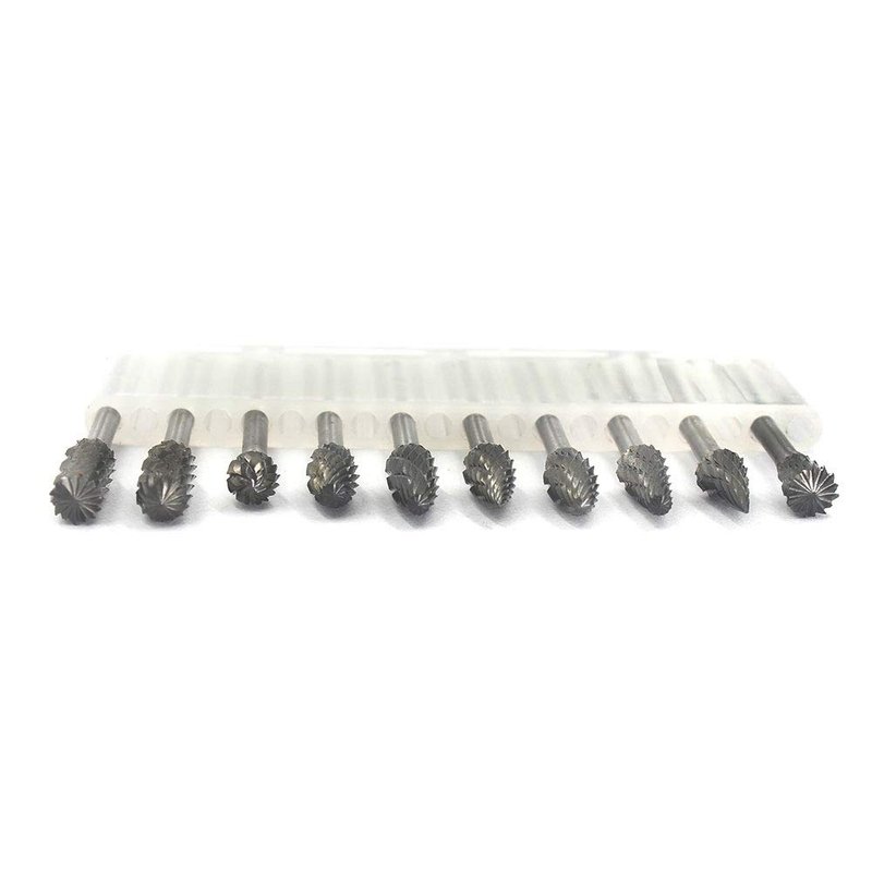 - 【Quantity】10 pieces Double Cut Solid Carbide Rotary Burr Set, 3mm(0.118) inch shank , fits dremel and most small rotary tools