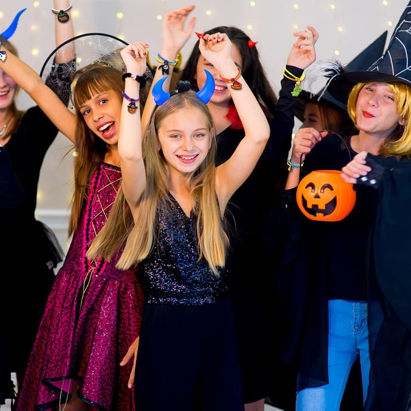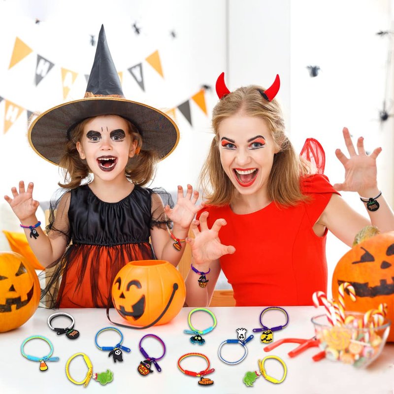 - PERFECT HALLOWEEN PARTY SUPPLIES: Add some festive fun to your Halloween party with these fun and cute bracelets. It's the perfect gift for kids' Halloween treats or Trick events, friendship bracelets, party favors, and more; You can use it as a Halloween prize to reward kids on Halloween night.