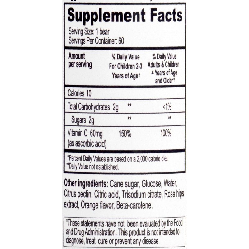 - YUM-V’s Vitamin C Jellies for Kids, Orange Flavor (60 count). Tooth-friendly pectin gummy bears contain 100% of the daily requirement of Vitamin C essential for children's nutrition and health.