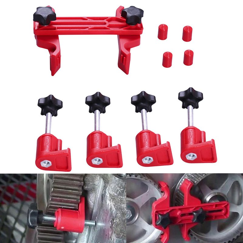 Yumfugu 9 PCS Car Main Cam Timing Sprocket Gear Locking Tool Set, Bump Locking Double Camshaft Anti-Slip Fixing Clamp, Automotive Work Protection Accessories, Suitable for Most Car Models (Red)