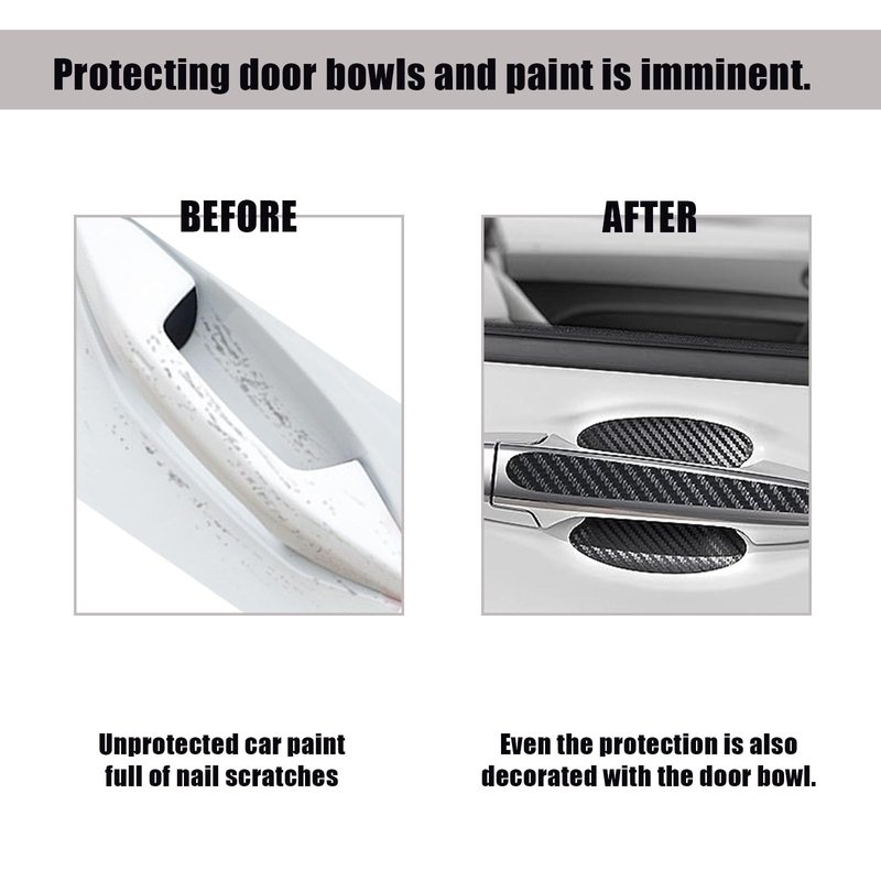 - Product Information: The package contains 4 pcs door bowl protection stickers and 4 pcs door handle protection stickers. The door bowl protector is 3.3 inches x 3.4 inches, which is suitable for most vehicles in the market.