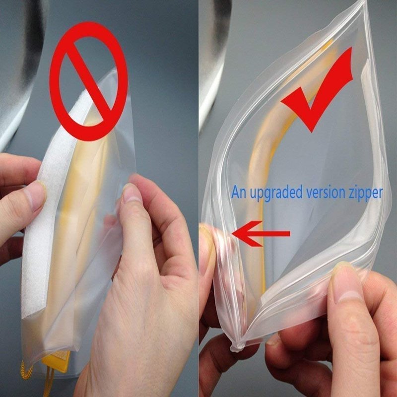 - Multiple Closure Type -- Extra Zipper & Fully Waterproof triple fold-down magic tape closure, Less stretch but Increased Resistance to Puncture and Tearing than convential bags.