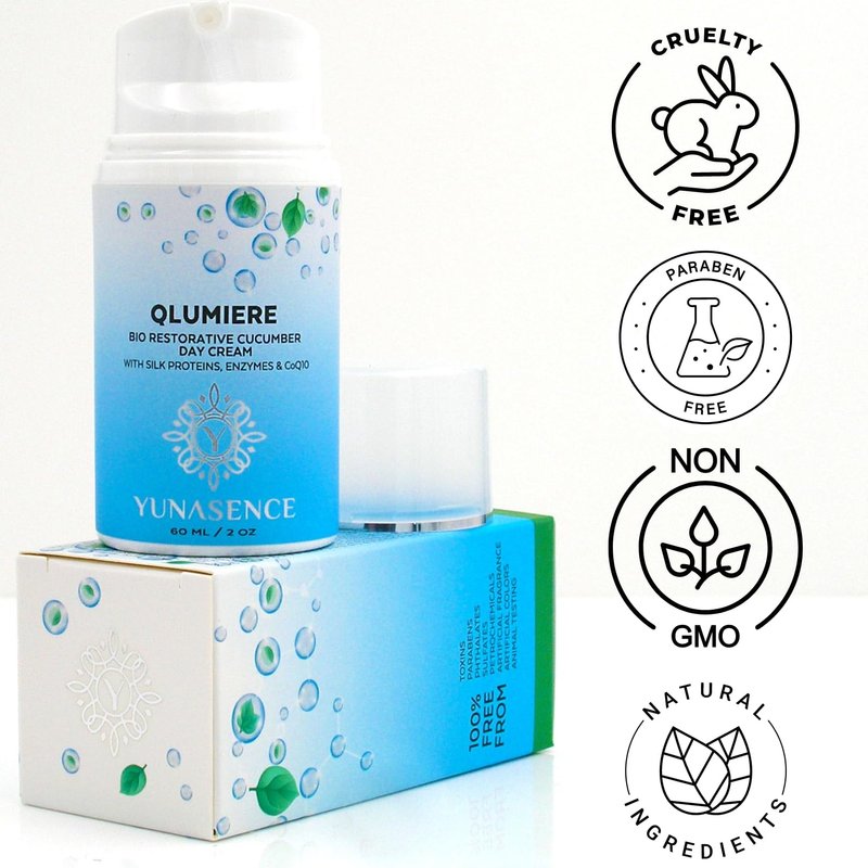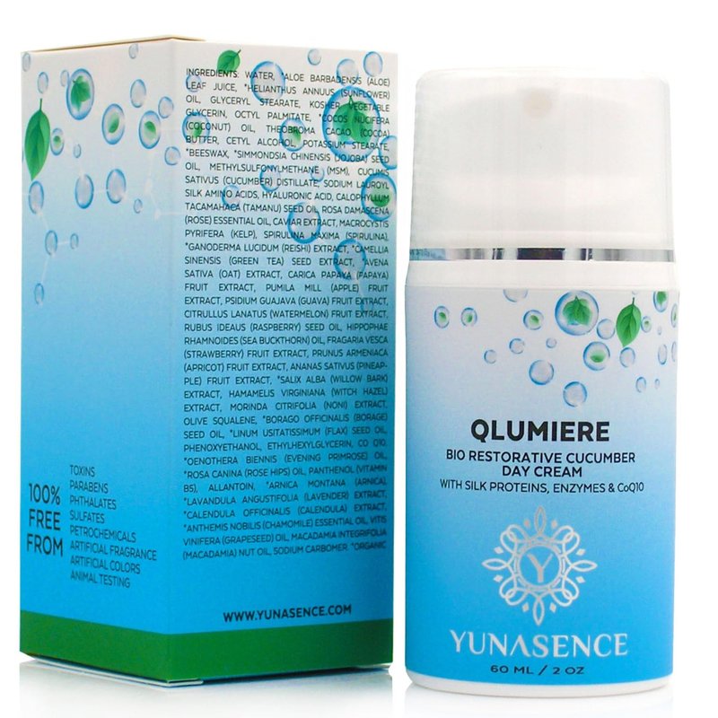 YUNASENCE QLUMIERE Bio-Restorative Soothing Cucumber Cream w/Amino Acids, Hyaluronic Acid, Enzymes, Caviar. Hydrating, Protecting.