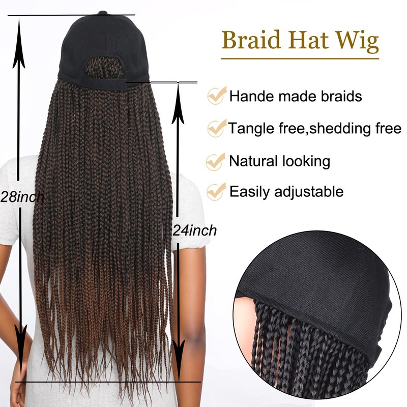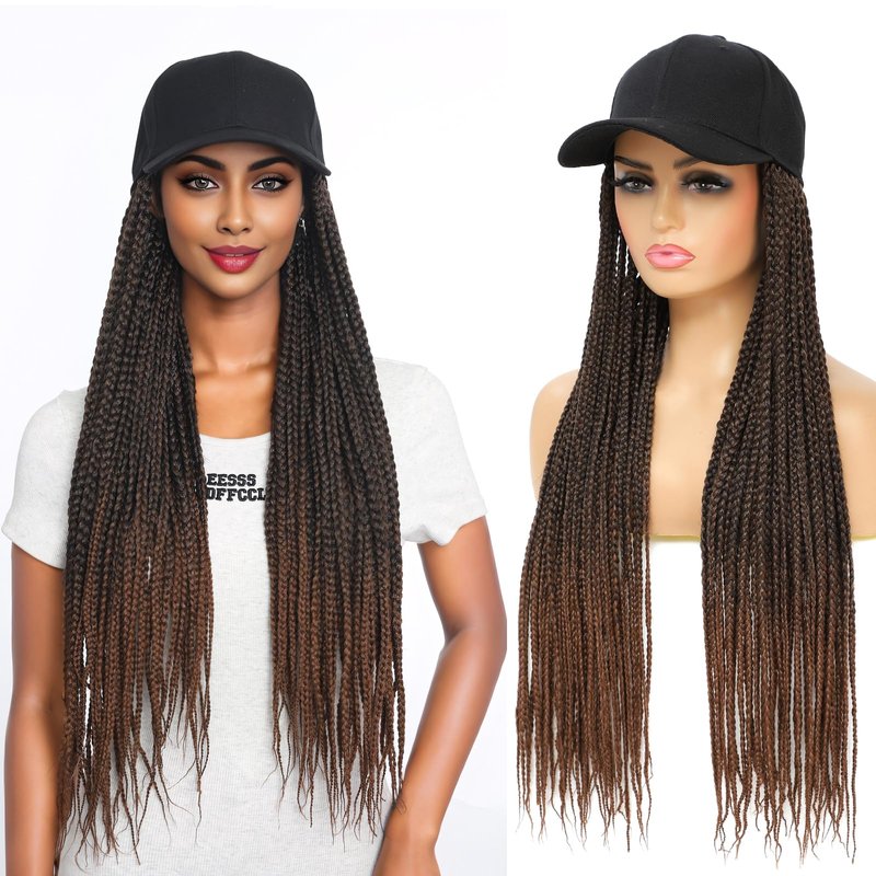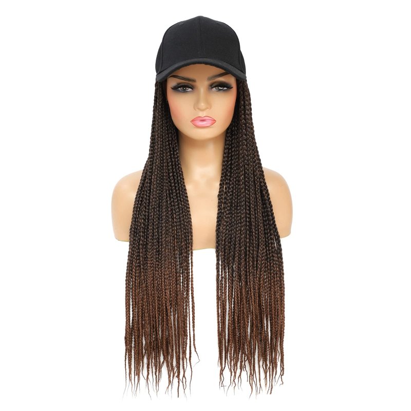 Yunkang Braided Baseball Cap Wig Box Braid with Hat Cap Wig with 24inch Long Synthetic Braiding Hair Attached for Women Ombre Color (B-T30)