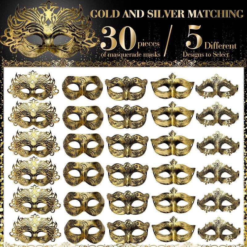 - Assorted Products to Meet Your Needs: you will receive 30 pieces of masquerade masks in retro and vintage color with 5 Styles, 6 of each style; Large quantity and multiple designs are suitable for family parties and various masquerades