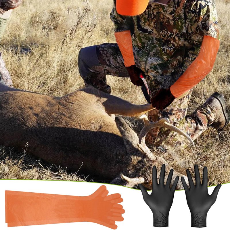 YUNVI 30 Pairs Field Dressing Gloves Deer Hunting Gutting Gloves, Veterinary Gloves Includes Disposable Arm Gloves & Nitrile Gloves