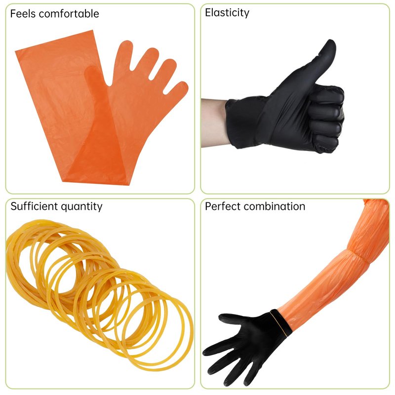- Field Dressing Gloves Kit: You will receive 100 pieces field dressing gloves, including 25 pairs long gutting gloves, 25 pairs short cleaning gloves and 25pcs yellow rubber bands. Different sizes for you to choose and enough quantity to meet your daily needs.