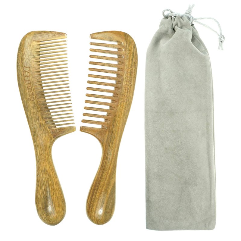 - This wooden comb is made of 100% high quality natural green sandalwood the handle is round and smooth, and feels good.Each comb is unique and no 2 combs look the same, and as times goes by, the color of the sandalwood will change gradually, making the comb a truly personalized accessory.