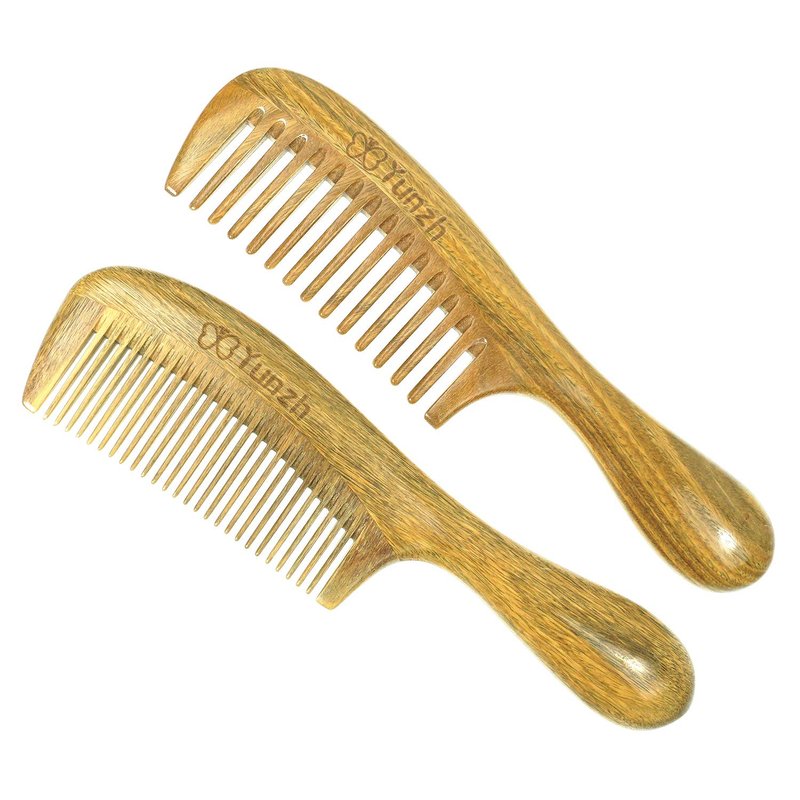 YunZh Wide Tooth Comb and Fine Tooth Combs, Natural Green Sandalwood Wooden Comb Set for Women Men(2PCS)