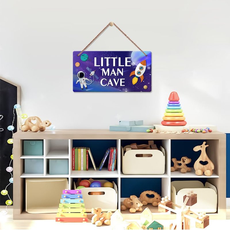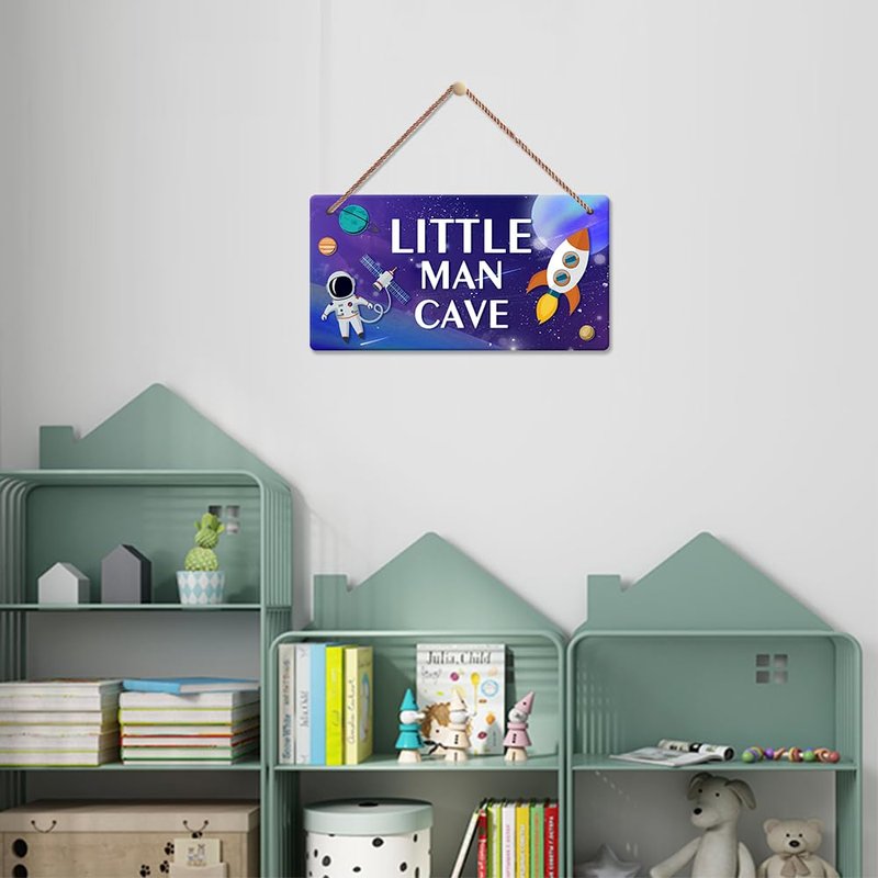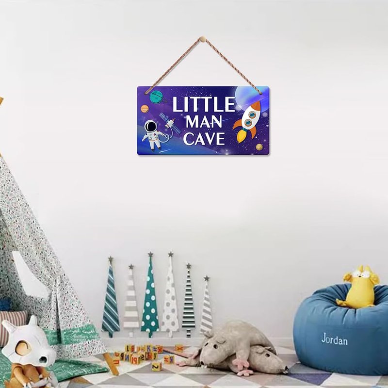 - Perfect Gift: Funny Outer Space Astronaut Wooden Plaque is great for the little boy who loves outer space and astronauts as his gift, whether it's a holiday or a birthday. It also has "Little Man Cave" printed on it.