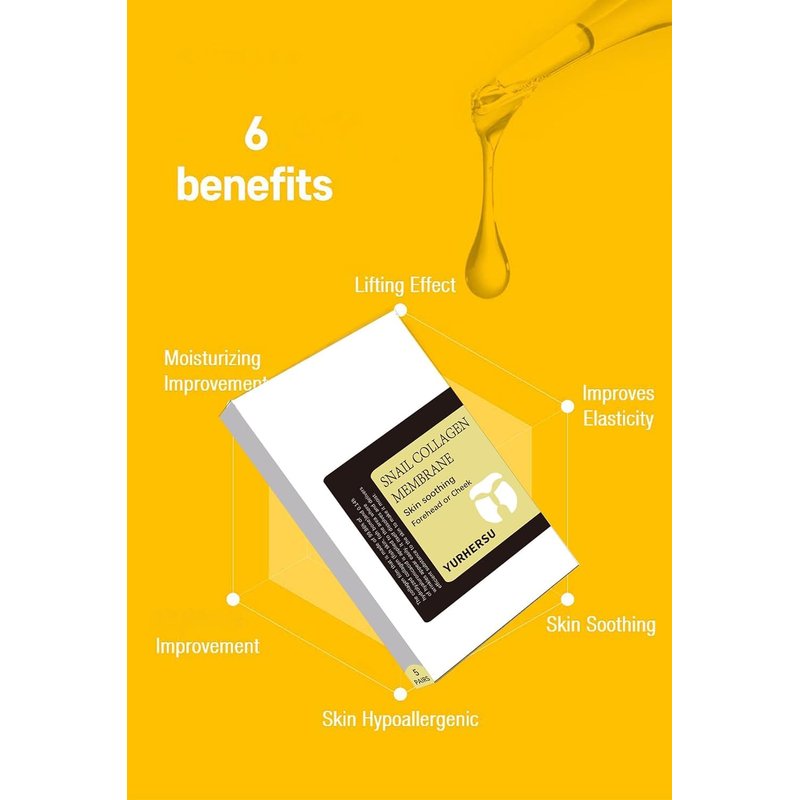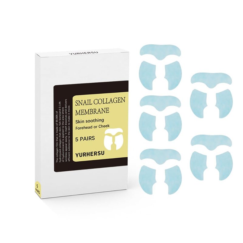 YURHERSU Melting Snail Collagen Face Film, Soluble Snail Face Mask, Skin Soothing Care Membrane Film for Forehead Cheek, Moisturizing Removing Fine Line, Anti Aging, Enhance Skin Elasticity- 5 Pair