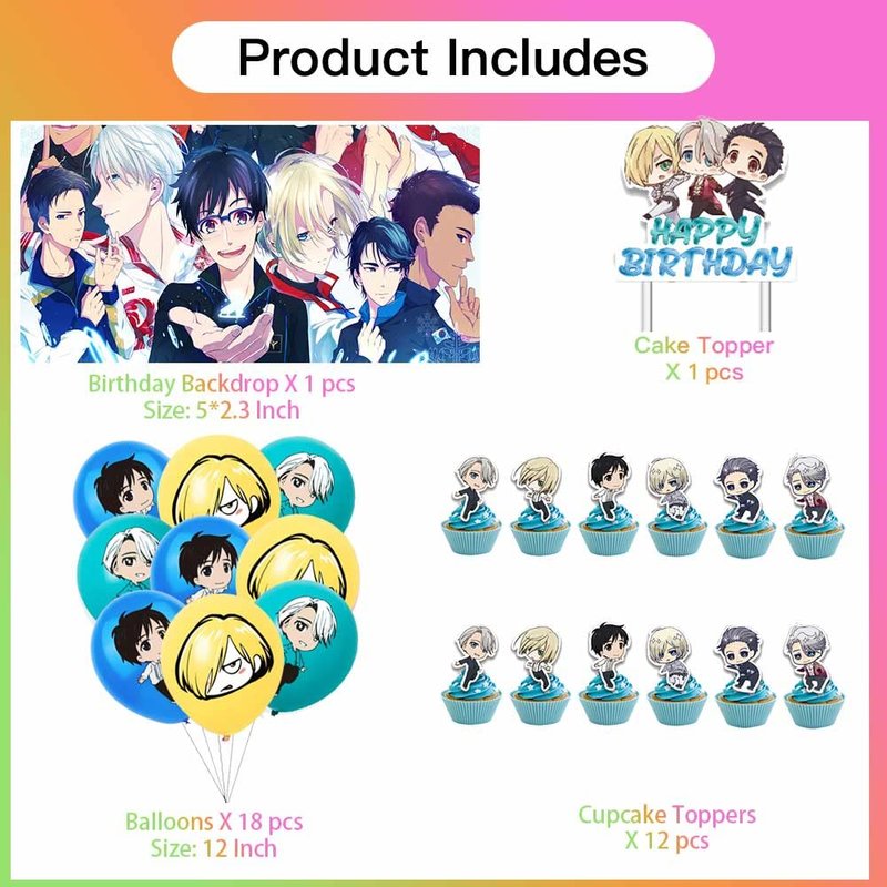 【Various Uses】: ☀ Our party supply is not only suitable for indoor theme parties,but also suitable for outdoor use. ☀ Party supplies decorations will make your party more interesting and attractive,and also leave deep memories for your babies and guests. 【Package Including】: ☀ 18pcs Yu Ice printed latex balloons, ☀ 1pcs happy birthday Yu Ice printed banner, ☀ 12pcs cupcake toppers, ☀ 1pcs big cake topper. 【Made with Upgraded Materials】: ☀ The cupcake decorations are made of sturdy, high-quality paper. ☀ The balloons are made of high-elastic latex. ☀ The patterns are clear, the design is novel and the set products are rich in colors. ☀ It will give your friends and family a surprise. 【Customer Service】: ☀ If you feel any unsatisfied with this purchase, please contact us,We will solve the problem within 24h.Have a good party time withyour friends and kids!