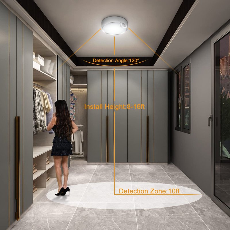 - 【Wide application】Battery powered motion sensor lights are great for space lacking light such as closets, stairs, storage rooms, basements, hallways, sheds, laundry rooms, bathrooms, etc.