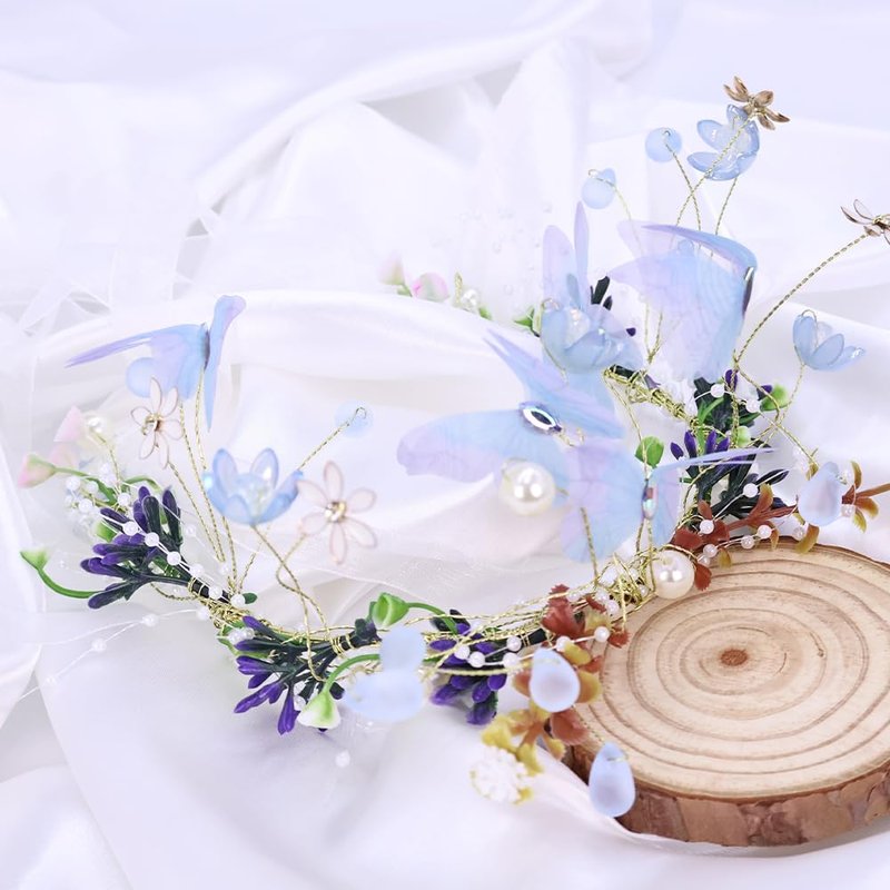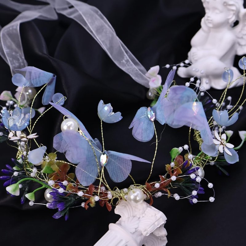 yuruyi Flower Crown for Women, Adjustable Butterfly Handmade Garland Crown Hair Wreath for Wedding Festival Party Floral Crowns for Girls Headhand Hair Accessory (Blue, Adjustable)