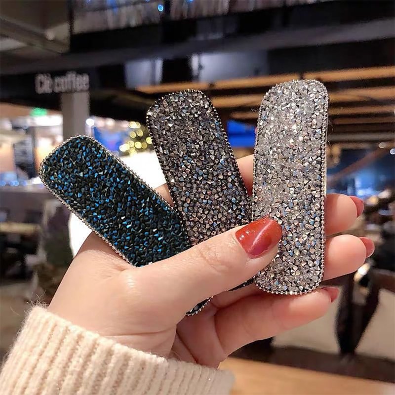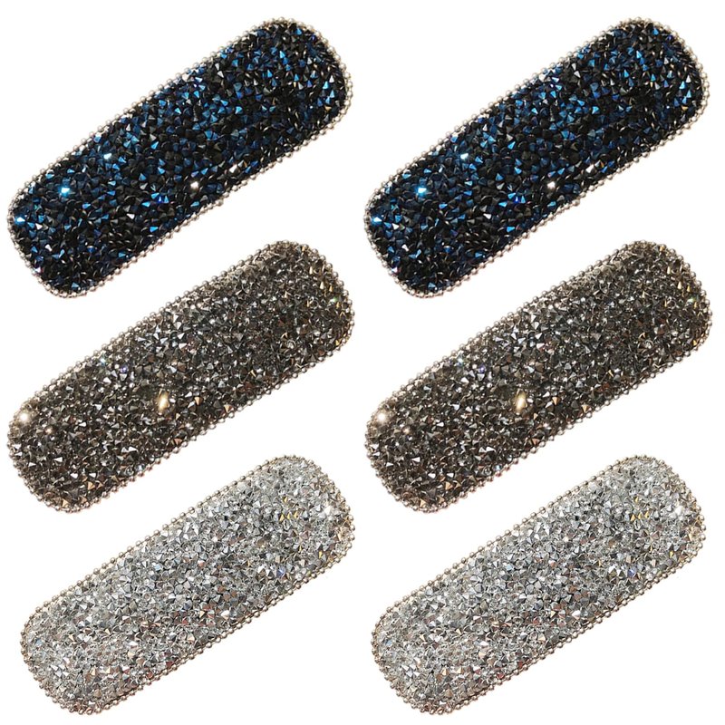 Yusier 3.1 Inch Hair Clips for Fine Hair 6PCS Rhinestone Snap Hair Clips Sparkly Hair Clips Rectangle No Slip Hair Barrettes for Women And Girls (Beaded Edging)