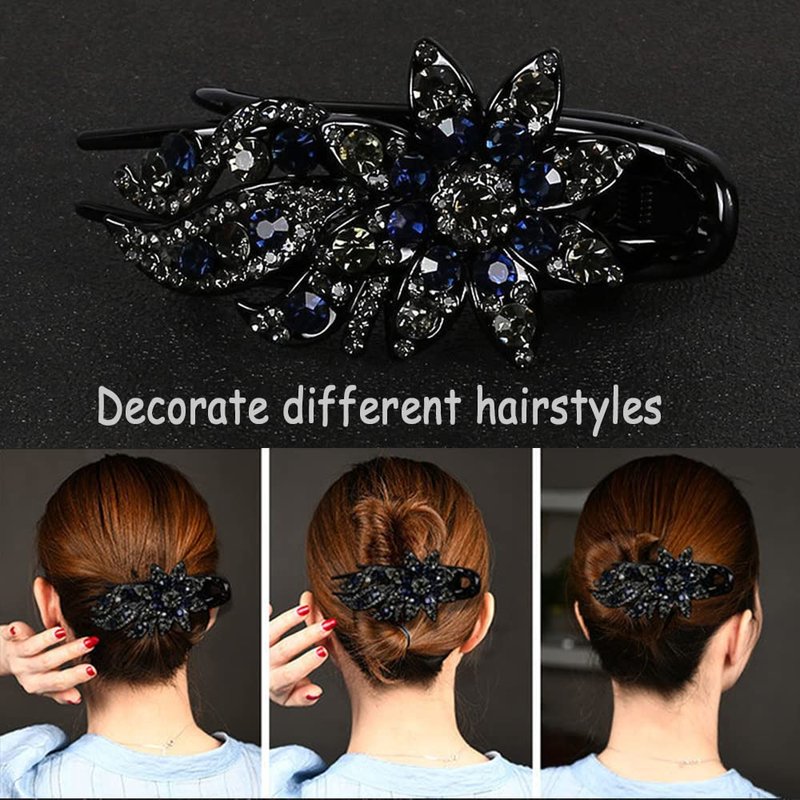 - French Round Flat Hair Clip: Side entry flat barrettes are easy to use and can create hairstyles quickly. The rhinestone encrusted flowers can decorate your hair well, beautiful and practical.