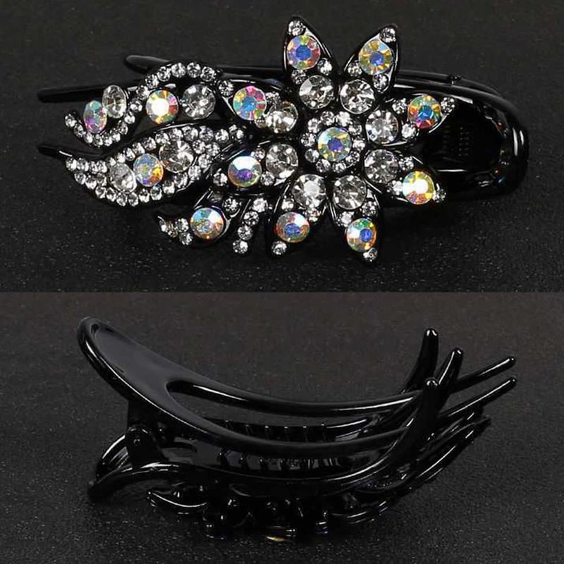 - Premium Material :Alligator hair clips are made of black plastic, hand-set with sparkling rhinestones of varying sizes, and rounded non-slip teeth that hold hair in place well and won't damage it.