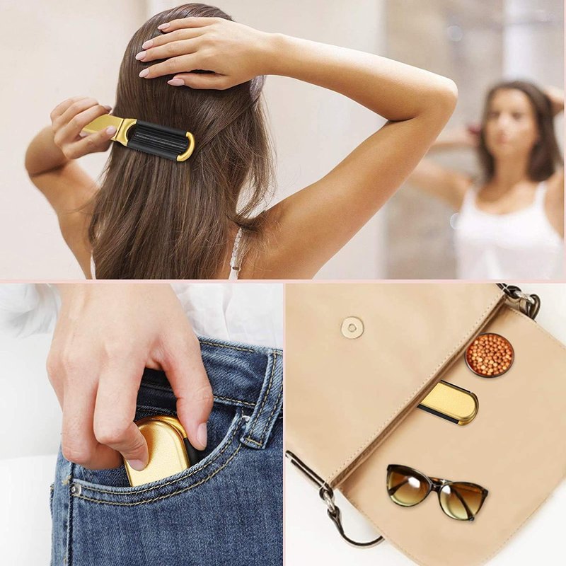- 【Folding Hair Brush Features】Come with 2 pack plastic travel hair brush on the page (Gold & Silver). The hair brush is pop-up, you can fold it up to save your space when you don't use it. Perfect as a gift for yourself, friends, or family.