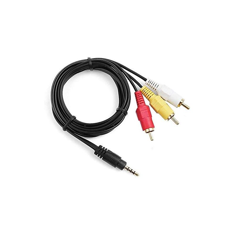 - One end of the connectors with: mini 3.5mm 4-din AV connector male.The other end with: 3 RCA AV plug male, colored with white, yellow & red
