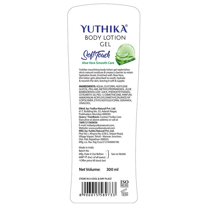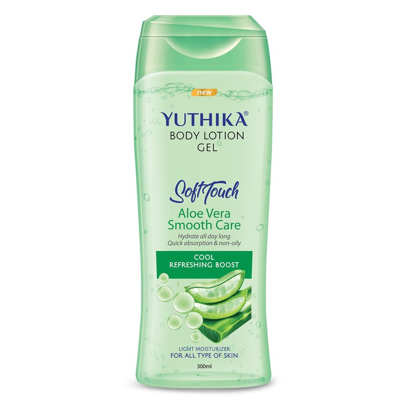 Yuthika Body Lotion Gel Aloe Vera Smooth Care 300ml Pack of 1, Soft Touch Gel Body Lotion for Summer, Winter, Light Moisture for Face and All Skin Types, Aloe Vera Body Lotion