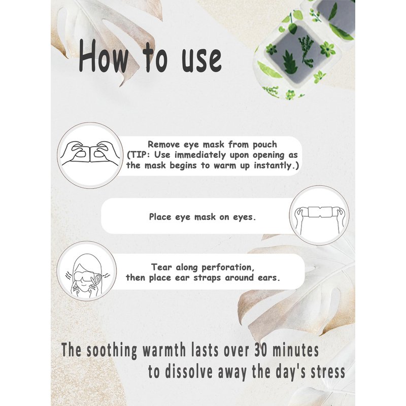 - Individually packaged for easy carrying. Each Eye Mask is self-heating instead of microwave heating or plug-in, which is safer and more convenient than many heated eye masks on the market.