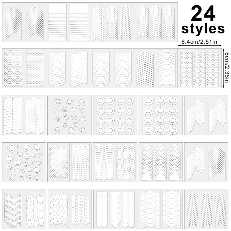 - [Design Your Nails] The french tip guide has a wide range of pattern designs, you can apply these french tip stencils to your natural nails or DIY nail art crafts, suitable for a variety of nail curvatures, helping you to create unique and stylish designs.