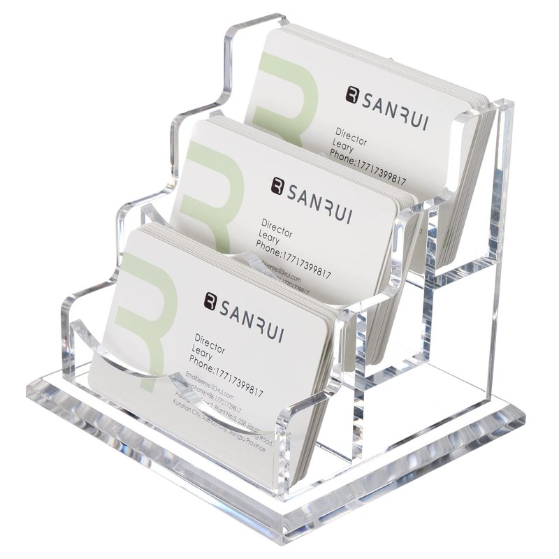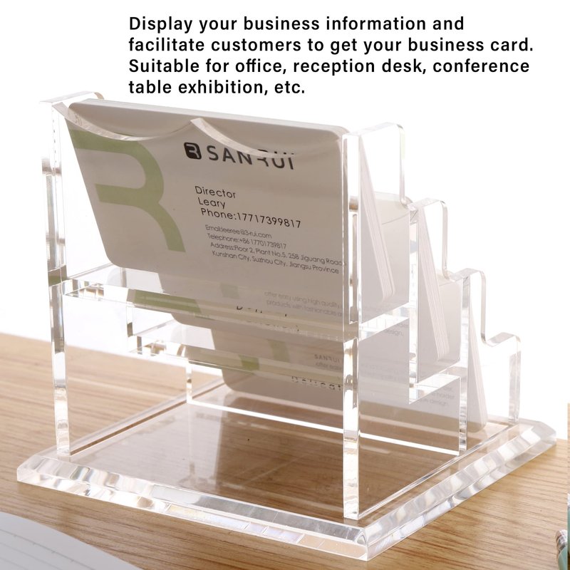 - Applicable size:3 tier business card holder,Standard business card size, 3.5 x 2.0 inches cards, horizontally placed card holder can hold - length or width - any 2 sides less than 3.5 inches cards.