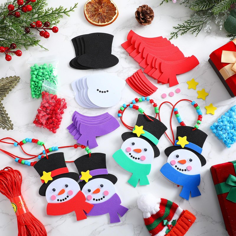 Yuxung 24 Sets Christmas Craft Kits DIY Christmas Snowman Necklace Crafts Kit Xmas Foam Crafts Christmas Holiday Gifts Party Favor Craft Activities