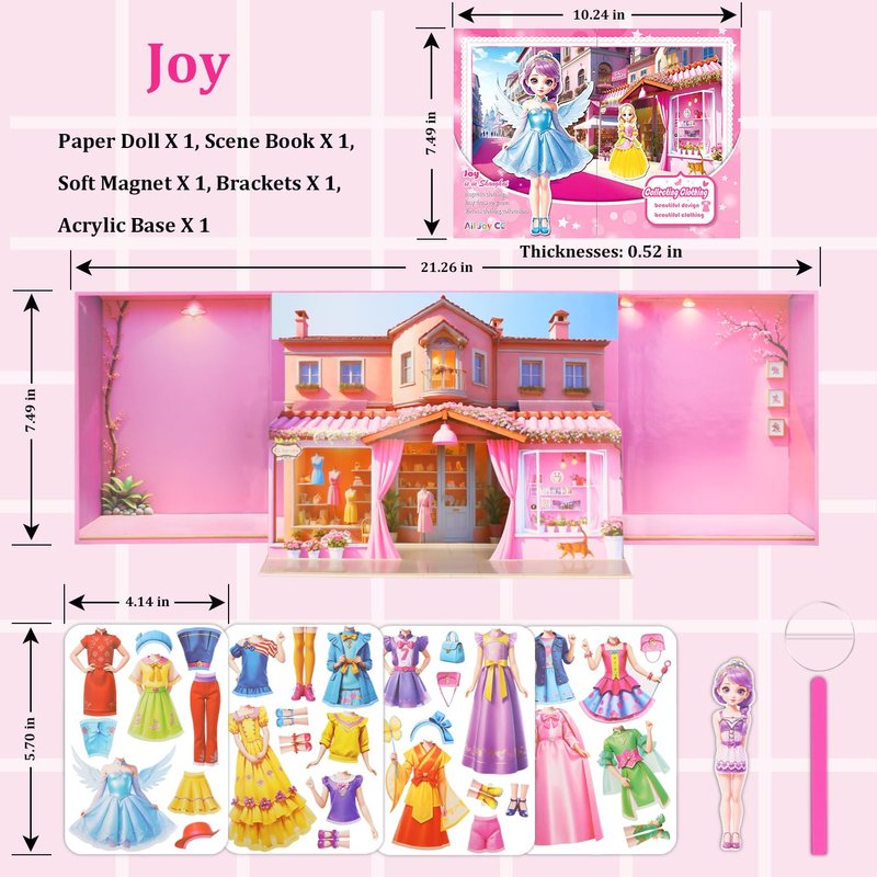 Yuzee Paper Dolls Stickers - Magnetic Dress Up Dolls for Girls - Toddler Travel Toys - 1 Paper Doll and 33 Clothing Accessories with 3D Magnetic Game Scene, Foster Creativity and Imagination (Joy)