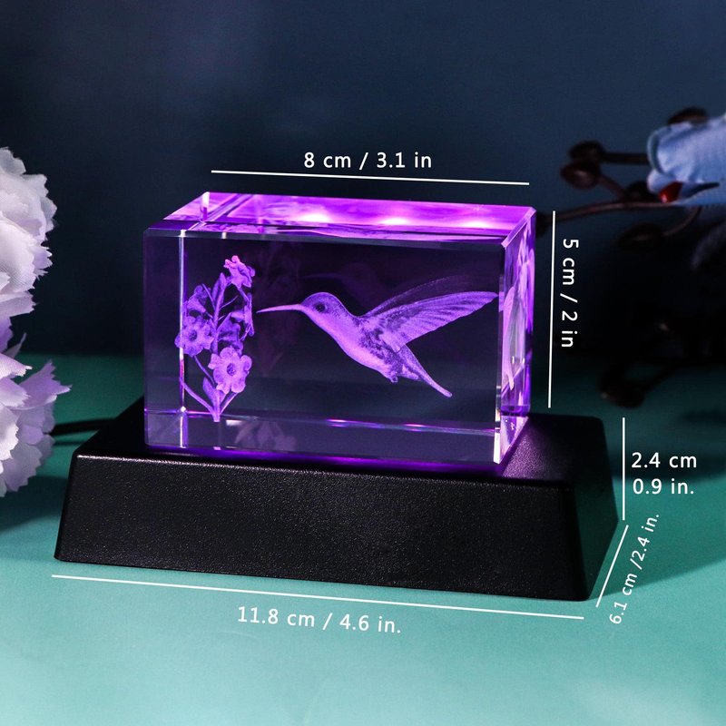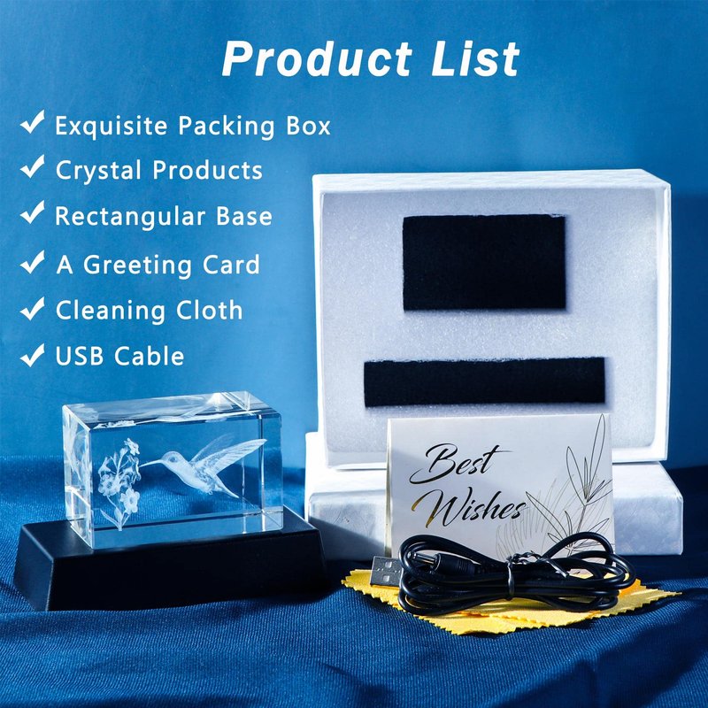 - Safe & Beautiful Packing: Packing includes a crystal hummingbird figurine, a colorful light base, a charging cable, a wiping coth, a gift card and a gift box. All the items have been securely packed to ensure it is in good condition on arrival
