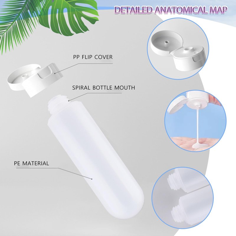 - Material:OUR travel size containers Use food grade materials, BPA free. Cap PP bottle PE ,Polyethylene has good chemical stability Soft and easy to use