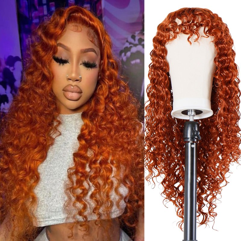 YXCHERISHAIR Curly Wigs for Black Women Ginger Afro Bomb Curly Wig with Bangs Long Curly Wavy Wig Synthetic Fiber Glueless Long Kinky Curly Hair (350, 24inch)