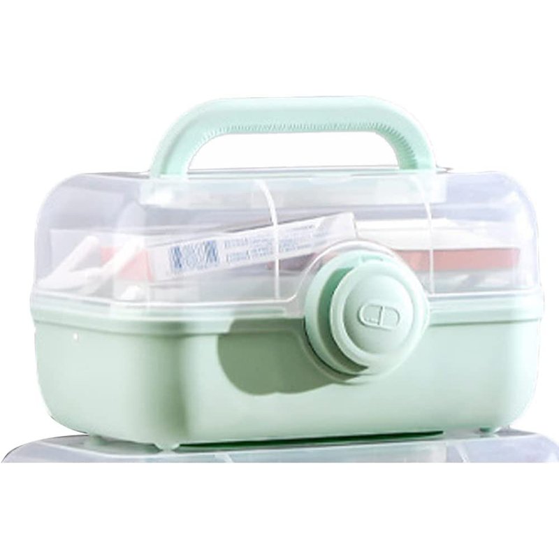 YXQ First Aid Box, Plastic Removable 3-Tier Fold Tray Pill Case Portable Handled Medicine Storage Organizer Box Empty Tackle Bin for Home/School/Office,Green