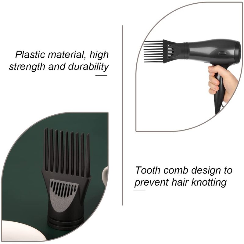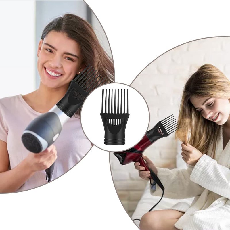 This hair dryers nozzle is made of high-quality plastic, heat-resistant and can be used for a long time. Moreover, it has a solid structure and will not easily produce break or bend and other frustrating problems. This pick comb attachment has a wide range of applications, including but not limited to straight hair, curly hair, etc. In addition. Its size is about 5.12*2.36in/13*6cm, which is easy to carry.