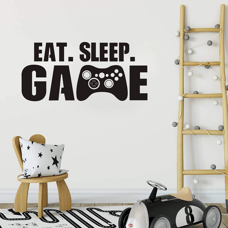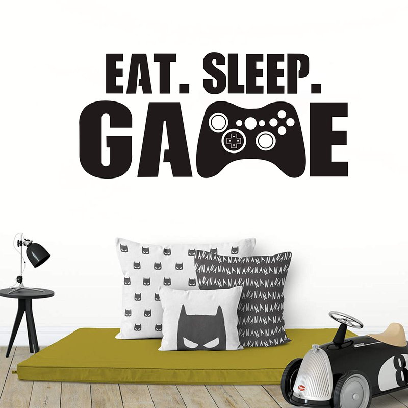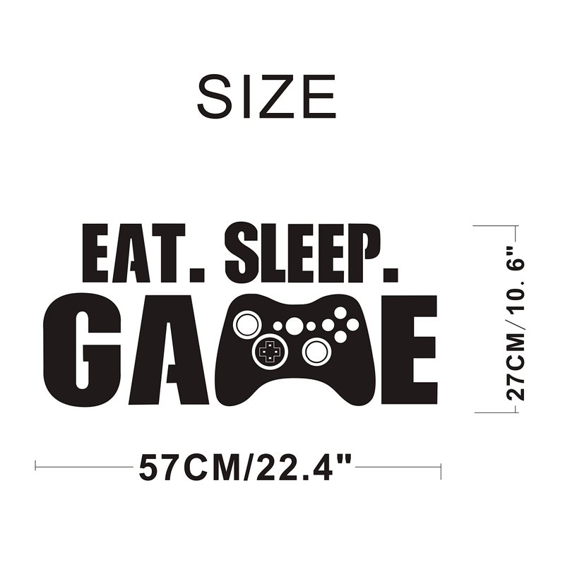 Yyart Eat Sleep Game Wall Decal Gamer Controller Wall Stickers Vinyl Wall Decal for Kids Bedroom Vinyl Wall Art Decals Nursery Decor A55 (Black)