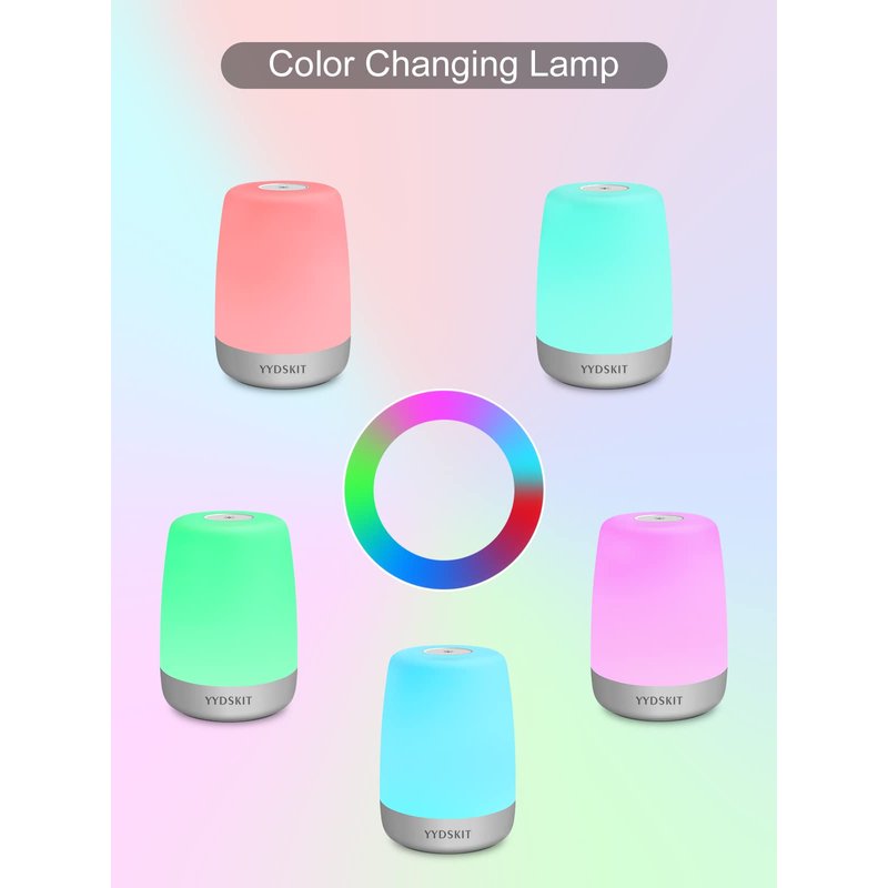 - Touch Dimmable Night Light for Baby Nursery >>> Touch activated,3 adjustable brightness(warm light mode),5 color options, 1 auto-cycle RGB color mode, battery operated, 3 timing options, memory last setting, foldable hook,all of these features make YYDSKIT night light a best nursery lamp for diaper changes and feeding, a fun and colorful mood light for kids' room.