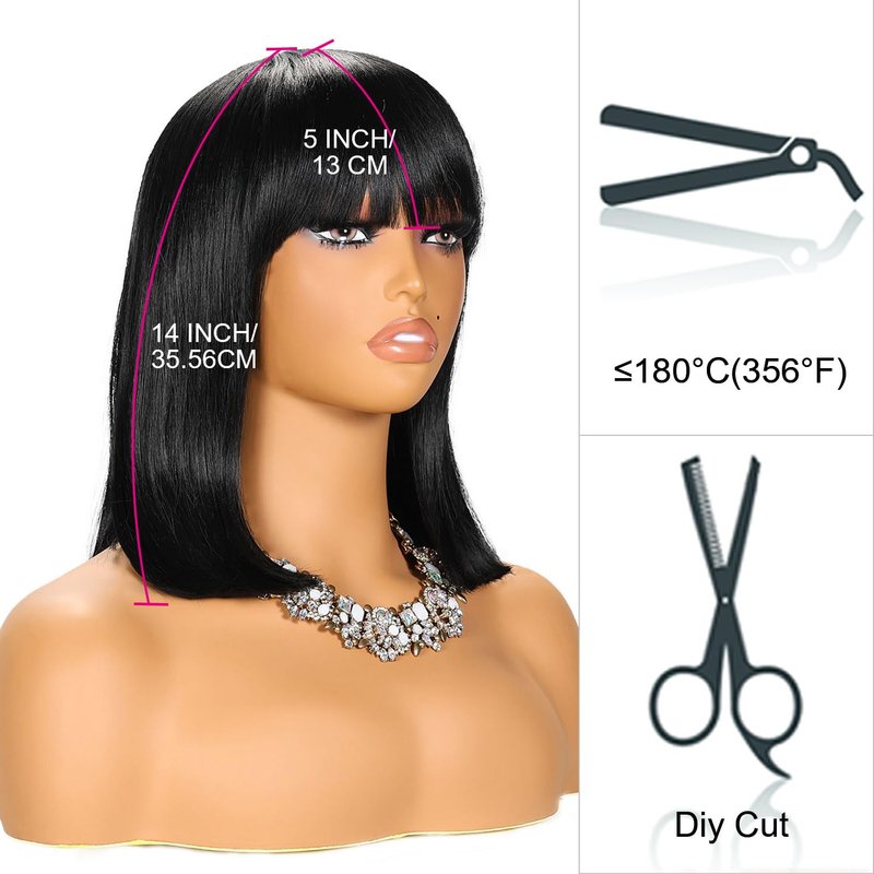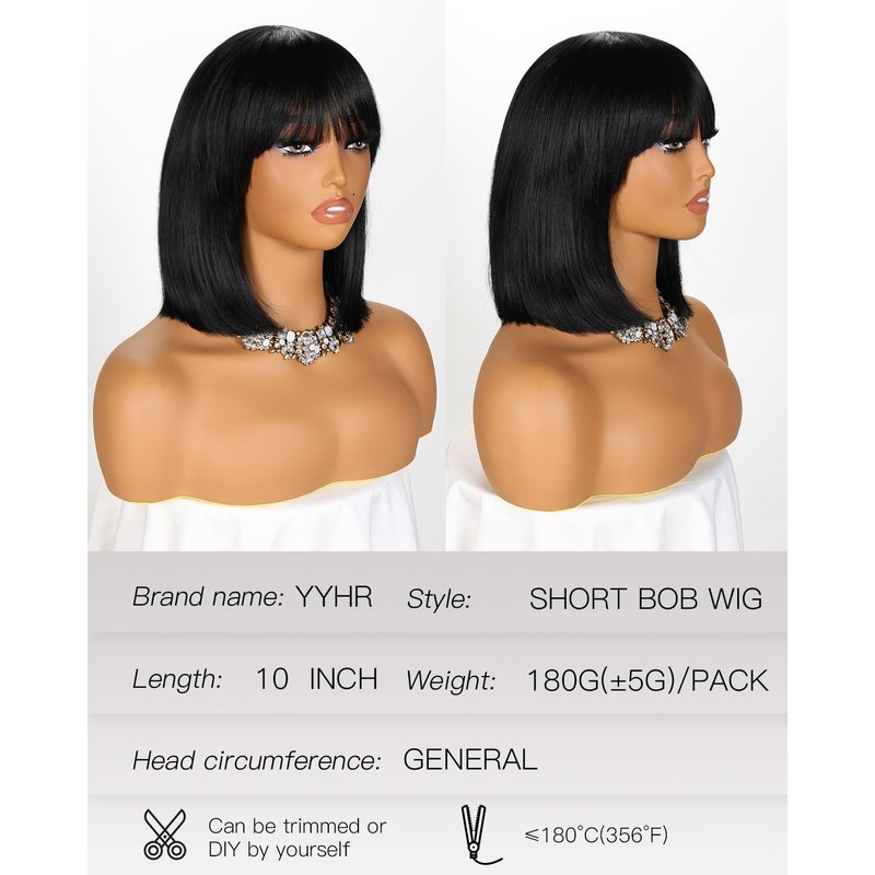 - LIGHT YAKI TEXTURE: Our short bob wigs are specially processed with light yaki texture so it looks and feels like real hair.Bob wig for women makes you charming, and short wig black design make the short wig bob easier to modify your face and cover your hairline. Short straight wig are not prone to change in shape during shipping. (For short bob wig you can to trim them yourself to make bob wig with bangs more suitable for you.)
