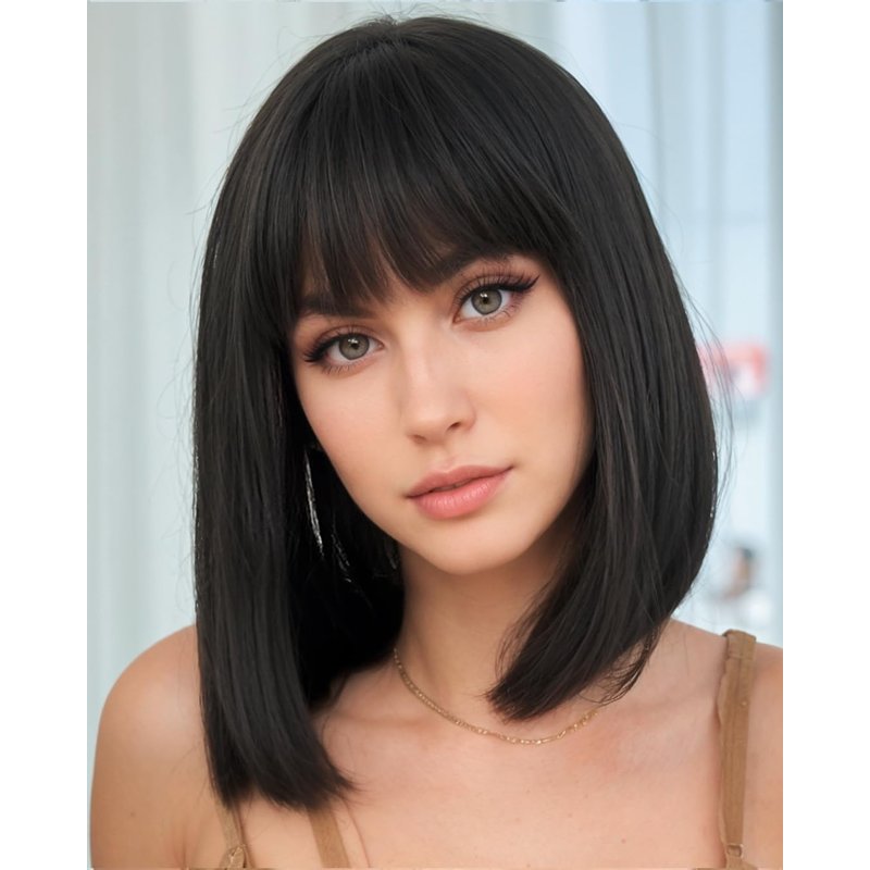 - PREMIUM WIG MATERIAL: Straight short wig is made of the best and most realistic synthetic heat-resistant fibers. Best straight wig with bangs, natural and soft, straight bob wig make your more charming and sexy, it's a perfect hairstyle. bob wig is soft and smooth, no harm to skin and no smell. Straight wig bob can be worn for a long time if you care short bob wig regular. Elegant bob wig with bangs design makes you more beautiful and confident.