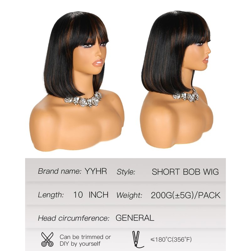 - LIGHT YAKI TEXTURE: Our short bob wigs are specially processed with light yaki texture so it looks and feels like real hair.Bob wig for women makes you charming, and short wig black design make the short wig bob easier to modify your face and cover your hairline. Short straight wig are not prone to change in shape during shipping. (For short bob wig you can to trim them yourself to make bob wig with bangs more suitable for you.)
