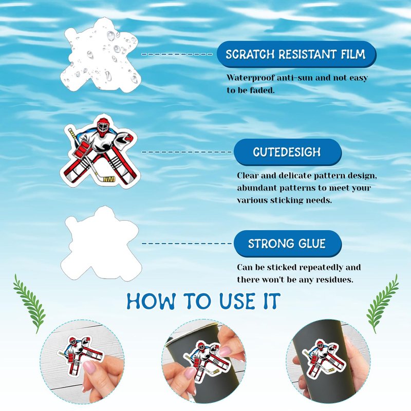 - Ice Hockey Stickers: Ice hockey stickers are printed with various ice hockey patterns, fashion and chic. Children can make cards or other gifts for friends with different ice hockey stickers, which can improve kid’s creative abilities. The ice hockey decor can be applied to laptops, backpacks, desks, suitcases, books, water cups, and more, which will surely elevate your visual experience and bring a touch of joy to everyday items