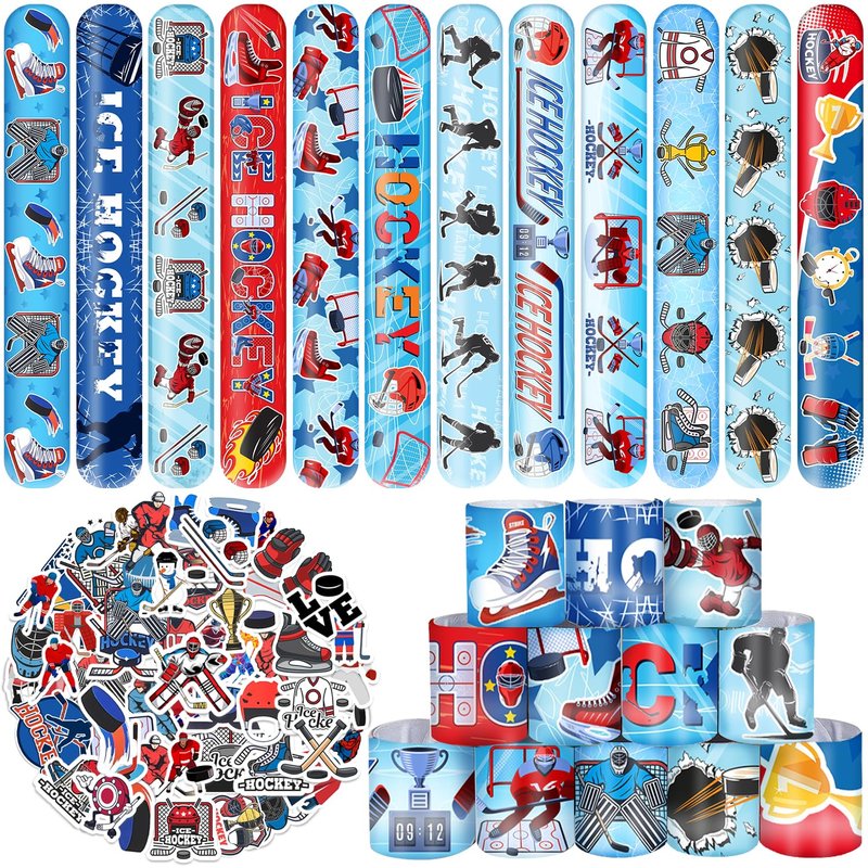 - Ice Hockey Party Decorations: Ice hockey party favors include 24 pcs ice hockey slap bracelets in 12 styles, 2 of each color and style, 50 pcs ice hockey stickers(50 stickers are randomly selected from 200 stickers). Enough quantity to meet your ice hockey party needs! Unique personalized pattern perfect for kids/teens gift