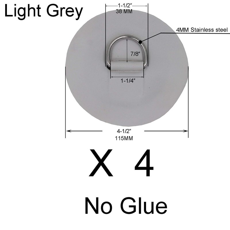 YYST 4 X Stainless Steel D-ring Pad/patch for PVC Inflatable Boat Raft Dinghy Kayak - No Glue included- Instruction Included- Light Grey