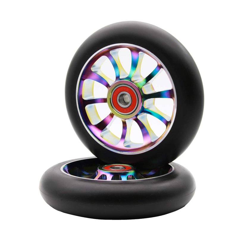 Z-FIRST 2PCS 110mm Hollow Core Pro Scooter Wheels with ABEC 9 Bearings Fit for MGP/Razor/Lucky Pro Scooters (Rainbow)