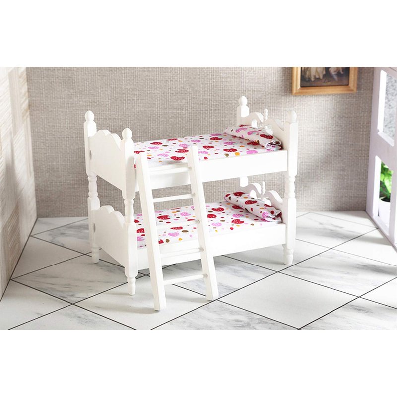 Z MAYABBO Wooden Dollhouse Furniture of Baby bunk Bed with Ladder for Miniature Dollhouse Accessories - 1/12 Scale