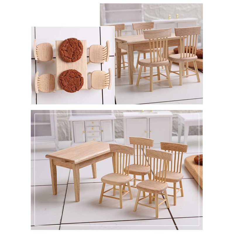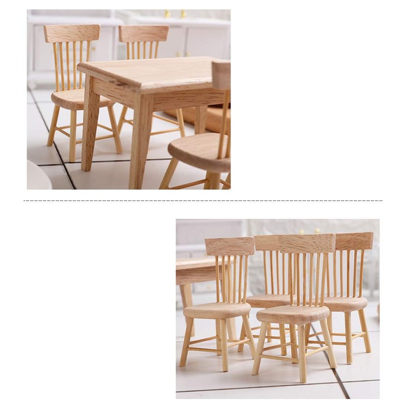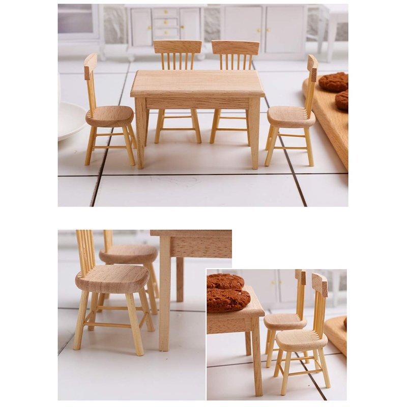 - Dollhouse furnishings come with a set of dining room table chair, including 4pcs Chairs and a table. A wood color furniture set for dollhouse role play.