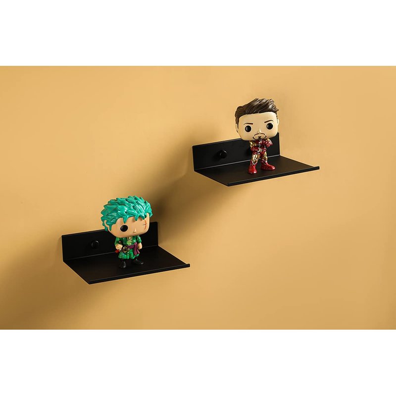 Z metnal Small Floating Shelves, Mini Display Metal Shelf for Collection, Decor Lack Wall Shelf, Utility Shelves,Aluminum, Wall Mounted, Matt Black, 8 inch, 2 Pack