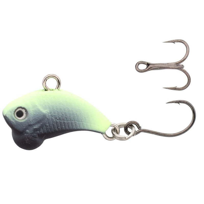 The Eurotackle Z-Viber Micro was the best of the ice fishing lures as soon as it was released in 2020! At 0.6" this mini lure weights 1/16oz just like the weight of our original Z-Viber. Just smaller thanks to a unique internal tungsten weight system, this bait will sink as fast as your average tungsten ice jigs. This tiny bait is an innovation when it comes to micro crankbaits. You can use it vertical jigging, casting in open water, and while ice fishing. This bait is a multi-technique fishing weapon. Amazing lure for Ultra Light combo.Bait Finesse and Ice Fishing. When jigged, the ultra light Z-Viber will provide tight vibrations going up and then into quick fall when going down. When retrieved it will produce a wide and unique wobbling action. The vibrations activate rattles that create a very subtle rattling noise. Armed with a high quality Japanese style single hook, you will also have the option to rig it with a high quality treble hook, which is included in the packaging. The Z-Viber on top of being weedless, will improve your hook up ratio. The single hook will give you the ability to tip the Z-Viber with an offering such as a Eurotackle Mummy Worm Preserved Live Bait or Micro Finesse soft lure for added attention. This small Z-Viber is very versatile lure and can be used in a lot of different scenarios. Great for Ice fishing when targeting Trout, Bluegill, Panfish, Crappie, Perch, Bass, Walleye and a lot more fish! This mini lipless hard bait is offered in a variety of colors that include Glow and UV color patterns. Size: 1/16oz _ 0.6" - 1 Pack