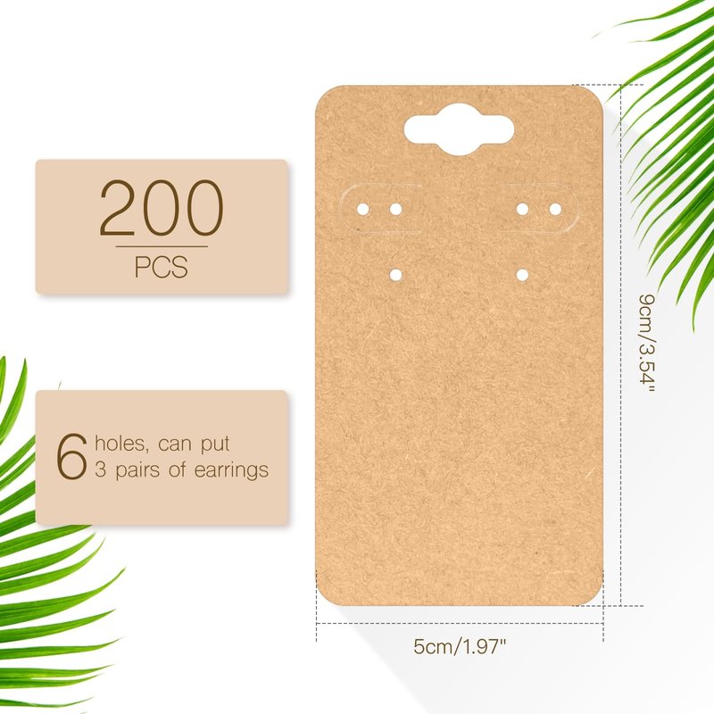 ZABARE 200 Pcs Earring Cards, 1.97" x 3.54" Brown Earring Display Cards for Selling, Earring Holder Cards with 6 Holes, Jewelry Packaging for Earrings Packaging Display & Crafts Business