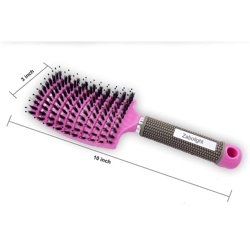 The Zabolight Boar Bristle Hairbrush: ☑️ PREMIUM BOAR BRTISLE HAIRBRUSH: The Zabolight Hairbrush brings amazing craftsmanship into one brush. Natural boar bristles help clean your scalp of excess hair, dust, and dandruff. Help retain hair and improve hair growth. ☑️ VENTED CONSTRUCTION: Designed to allow air to pass through the brush with quick blow-drying time and styling. Vented design allows this with wet or dry hair. ☑️ LIGHTWEIGHT: Super lightweight design for fast movement and ease of use. Oversize design holds more hair and lets you style how you want! ☑️ FUNCTIONAL RUBBER HANDLE: Non-slip rubber grip conforms to your hand for more control and comfort with wet or dry hair.☑️ CURVED DEISGN: The Zabolight Hairbrush flexes to the shape of your scalp and head. Allowing each bristle to smoothly go through your hair. Stimulating healthy hair and massaging the scalp all at once.