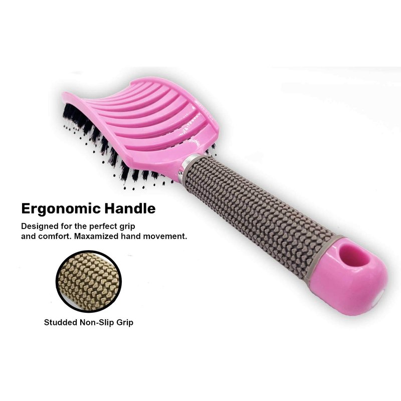 Zabolight Premium Vent Boar Bristle Hair Brush Vented Detangling Oversize Hair Brush for Thick Long Curly Hair, Curved Fast Blow Drying Brush for Women & Men (Pink)